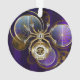 Aranha-do-galo feita de ouro e aço com relógios antigos decorados com engrenagens de ouro sobre fundo roxo, listrado, texturizado com lentes e engrenagens de latão. Estilo Steampunk.