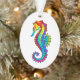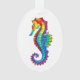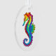 Articulação artificial, brilhante, arco-íris, cavalo de mar poligonal sobre fundo branco. Tatuagem brilhante.