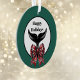 Este enfeite rico de Natal Merry é um presente excelente para amantes de os animais, marítimos, amantes de praia, ou qualquer um que ama avistar baleias na costa. Quer seja Beluga, Minkey, Humpback, Orca, ou Pilot Whales, é sempre uma surpresa especial quando uma delas aparece. Este ornamento apresenta um texto preto personalizável, nítido e personalizável, "Felizes Feriados", uma encantadora ilustração de cauda de uma baleia branca e preta, disparada por um arco e fita colorido. Um verde festivo rodeia a design de um ornamento ou presente que o ajudará a celebrar o Natal em estilo náutico.
