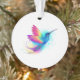 Bela, iridescente, exótica beija-flor voadora sobre fundo branco, pintada com pintura multicolorido, aquarela. Cotovelo-cotovelo.