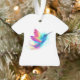 Bela, iridescente, exótica beija-flor voadora sobre fundo branco, pintada com pintura multicolorido, aquarela. Cotovelo-cotovelo.