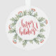 O primeiro Natal como babá e vovô é precioso tempo para ser comemorado e este encantador amor, com a foto do seu novo neto netinho será tesourado e uma adorável memória para pendurar na sua árvore nos próximos anos! De cada lado está uma borda natalícia de folhas verdes festivas e bagas vermelhas. Na frente, simplesmente substitua a foto da amostra no meio pela do seu próprio bebê. Escolha uma imagem em que o rosto do seu bebê esteja centrado para que ele se ajustado corretamente na forma circular. Você pode personalizar facilmente o texto com o nome de seu filho ou filha e o ano curvo por baixo da foto, e o Primeiro Natal como babá e vovô é curvo no topo, mas isso pode ser facilmente alterado para vovó e vovô, vovó e vovô, ou o que você quiser. Do outro lado, Happy Holidays está em um conjunto elegante de tipografia vermelha com a mesma borda de folheto.