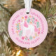 Este ornamento de unicórnio neta personalizado apresenta um lindo design de unicórnio branco com flores bonito. Personalize o texto na frente e atrás.