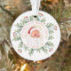 O primeiro Natal como vovó e vovô é um momento especial para ser celebrado e esta encantadora manutenção, com a fotografia do seu novo neto netinho será tesourada e uma maravilhosa memória para pendurar na sua árvore em Natal para vir! De cada lado está uma borda natalícia de folhagem verde festiva e bagas vermelhas. Na frente, simplesmente substitua a foto da amostra no meio pela do seu próprio bebê. Escolha uma imagem em que o rosto do seu bebê esteja centrado para que ele se ajustado corretamente na forma circular. Você pode personalizar facilmente o texto com o nome de seu filho ou filha e o ano curvo por baixo da foto, e o Primeiro Natal como vovó e vovô está curvado no topo, mas isso pode ser facilmente alterado para avó e vovô, babá e vovô, ou o que você quiser. Do outro lado, Happy Holidays está em um conjunto elegante de tipografia vermelha com a mesma borda de folheto.