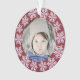 Personalize este ornamento de duas fotos lado a lado com este design cor-de-rosa floco de neve opal para os avós como uma bela manutenção para o Natal ou Hanukkah. A frente deste Enfeites de natal redondo personalizado apresenta um modelo de fotografia rodeado por uma profunda borda vermelha e uma matéria de falso falso falso falso flocos de neve opais iridescentes ao redor. O modelo de foto torna mais fácil carregar uma foto do neto. A parte de trás desses Enfeites de natal personalizados tem um fundo sólido de vermelho arrojado rico, três modelos de texto em uma fonte bem escrita e três flocos de neve opais cor-de-rosa dispostos de forma artística em torno de seu texto personalizado. Adicione o(s) nome(s) do Avô, o(s) nome(s) do neto e o ano para um dos tipos, crie o ornamento da árvore dos seus Avós em flocos de neve opais cor-de-rosa para o tesouro por anos. Tão fofo e fácil de personalizar, é fácil fazer um para a vovó e um para o vovô para um conjunto de correspondência.