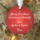 Qualquer avô adoraria receber este Enfeites de natal vermelho moderno de floco de neve dos netos! Personalize com o ano e os nomes de sua escolha.