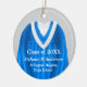 Ornamento personalizado de graduação em dupla face decorado em cores de vestido azul e branco para aquela mais velho especial feminina. Edite texto personalizado na frente e atrás no editor de texto fácil do Zazzle.