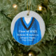 Ornamento personalizado de graduação em dupla face decorado em cores de vestido azul e preto para aquela mais velho especial feminina. Edite texto personalizado na frente e atrás no editor de texto fácil do Zazzle.