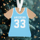 Ornamento Uniforme da Equipe Esportiva de Basquete Jersey. Este ornamento de camisa de basquete é perfeito para qualquer um que pratica esportes escolares ou ama assistir esportes. Personalize este design personalizado com o seu próprio nome de equipe e número de camisa.
