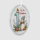 Celebrate your little one’s first holiday season with this charming snowman ornament, featuring a cheerful snowman in a blue hat and red-striped scarf beside a festive number "1" topped with a Santa hat. Surrounded by pine branches, sparkling ornaments, and gentle snowfall, this heartwarming design captures the magic of a baby's first Christmas.