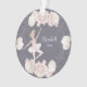 Esta bonito bailarina floral cor-de-rosa, num ornamento acrílico de Natal, é uma escolha excelente para o dançarino da sua família. Design apresenta flores rosa e brancas e bailarina com cabelos loiros.