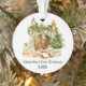 O Primeiro Ornamento de Natal do Bebê apresenta uma linda cena de natal com aquarela. Inclui lareira, meias de natal, árvore de natal, presentes, folhagem de pinho-verde e cavalo de brinquedo. Adicionar Nome.