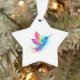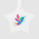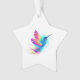 Beija-flor exótico brilhante e iridescente voando sobre um fundo branco, pintado com tinta aquarela multicolorida. Beija-flor arco-íris.