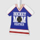 Diversão, design de camisa da mãe de hóquei personalizada. Personalize esta camisa azul e vermelha com o nome da sua mãe de hóquei favorita!