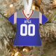 Personalize este ornamento azul, prateado e vermelho para o seu fã de futebol favorito!