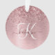monogram girly blush pinkpink glitter sparklepretty chic sparkly pink glittersmonogrammed trendy metallic modernbrushed steel metal elegant decorativesparkling glittery ornamentluxury glam handwriting scriptglitter glamorous ornamentscustom elegant hand lettering namepersonalized ornament