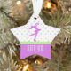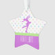 ornamento Estrela-dado forma do patinagem artística, com lavanda e pastel. Caracteriza uma figura patinador e um fundo polca-pontilhado.