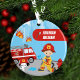 Ornamento Bombeiro de Cartoons de Menino com Nome no Natal