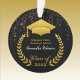 presente de ornamento de graduação para aquele segundo grau especial ou formando universitário com texto frontal e traseiro personalizado. Apresenta a imagem de um boné de formando dourado e uma coroa de louros impressa sobre fundo preto em acrílico resistente. Acentuado com confete de ouro falso. Cores vermelhas, azuis e outros bonés também disponíveis neste mesmo design