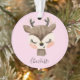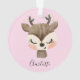 Enfeite de rena-bebê rosa, doce, fofo e esfarelo feminino. Adicione seu próprio nome personalizado e crie um ornamento especial!