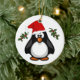 Adicione o ano do Natal. Pinguim bonito do Feliz Natal. A parte dianteira caracteriza um pinguim adorável dos desenhos animados com seus olhos grandes, pés atarracados e vestir seu chapéu do papai noel. Os ramos do azevinho do inverno flanqueiam seus lados. A parte traseira é vermelha com Feliz Natal e o ano escrito como o lado comemorativo. O comprar como é, ou personaliza a parte traseira com seu fraseio, ou apenas o ano, ou suprime de ambos se preferido. Uma adição agradável a suas árvore ou decorações dos chirstmas. Nota - este design caberá somente corretamente no círculo, ou em estilos superiores.