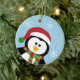 O ornamento bonito do pinguim do Natal caracteriza um pinguim com um chapéu de Papai Noel em vermelho, em branco e em verde e um lenço listrado vermelho e verde em torno do pescoço do pinguim e de três flocos de neve brancos em uma luz - fundo azul. Clique "personalizam-no!" abotoe para adicionar o texto e o mais!