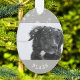 Enfeite de foto de cachorro de inverno bonito. Você pode personalizá-lo com a foto do seu animal de estimação e o nome. Insira sua foto favorita. Bela neve branca sobrepõe a foto. Você pode usar este ornamento personalizado para qualquer animal de estimação. O ornamento é em cor de cinza. Um excelente para você ou um presente para sua família e amigos.