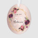 Um ornamento para um aniversário de cinquenta anos (ou qualquer idade) feminino e glamouroso. Um fundo de gradiente rosa ouro. Uma falso estrutura geométrica dourada e flores aquáticas, florais em ouro borrado, rosa e rosa. Personalize e adicione uma data, nome e idade 50. O texto: O nome é escrito em ouro rosa escuro com uma escrita de estilo moderna, escrita à mão. Perfeito como decoração de festas, favor, guardar ou como presente.