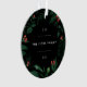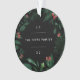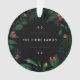 Um elegante design botânico de férias que enquadra seu nome familiar e o ano com uma folhagem de inverno exuberante e groselhas vermelhas em um fundo preto dramático para um toque moderno. Adicione uma foto favorita ao verso, cercada pelo mesmo motivo botânico.