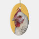 Um ornamento com um retrato da foto de uma galinha clara preto e branco de sussex, com um pente vermelho, em um fundo alaranjado customizável.