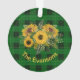 Esta design apresenta um adorável buquê de girassol de outono ouro contra uma xadrez de Natal verde e preta. Adicione o seu nome ou iniciais a este ornamento, que tem uma mistura de um aspecto rústico clássico, mas fresco, fazenda. Digite o texto desejado na seção Personalizada ou exclua o nome do marcador de posição se você não quiser texto.