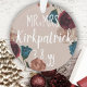 Essa bela manutenção do casamento é perfeita para uma estética de casamento botânica em primavera. Surpreenda a noiva e o noivo com um ornamento para comemorar seu primeiro Natal. Versátil para cores de casamento de burgundy, teal, bege e rosa dourado.