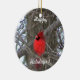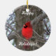 O Cardeal Vermelho Brilhante dá alegria de inverno a este ornamento de feriado - personalize com mensagens pessoais ou mude para "Feliz Natal" facilmente com fontes Zazzle disponíveis. presente de excelente para a árvore do amante da natureza!