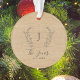 Monograma personalizado e nome com família estabelecida no ano elegante estilo quic farm house ornamento redondo de árvore. ++++++ Um presente moderno de manutenção para os feriados de Natal.