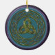 Um nó celta metálico da trindade do ouro esverdeado com uma corrente circular em torno dela que simboliza o ciclo interminável da vida e a trindade do corpo, da mente e do espírito.