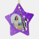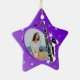 Ornamento de estrela roxa com quadro fotográfico para o seu jogador de saxofone favorito. Personalize com sua própria foto e altere o texto na parte traseira do ornamento para atender às suas necessidades.