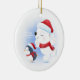 Esse Enfeites de natal cerâmico é apresentado em forma redonda, com fundo branco e um urso polar festivo de férias e impressão de pinguim. Personalize este item ou comprar como está.