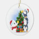 Esse Enfeites de natal cerâmico é apresentado em forma redonda, com fundo branco e um urso polar festivo de férias e impressão de pinguins. Personalize este item ou comprar como está.