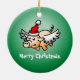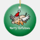O Porco de Natal Voador num Ornamento de Círculo Cerâmico. Personalizar texto.