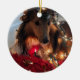 O ornamento da árvore de Natal redonda com um retrato da minha prateleira, todo decolado e pronto para o natal.