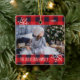 Enfeites de natal em floco de neve com foto da família apresentando o padrão de xadrez de búfalos vermelhos e fotos de dois lados. Personalize facilmente o texto e as imagens.