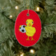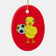 Um pintinho amarelo segurando uma bola de futebol é um design desportivo humorístico para voltar à escola, aniversários e feriados.