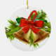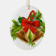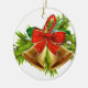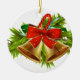 Enfeites de natal apresentado em forma redonda e feito de porcelana com sinos de férias design. Personalize este item ou comprar como está.
