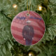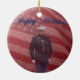 Personalize facilmente este ornamento militar de Feliz Feriado com texto para seus amigos, família ou entes queridos. Um soldado orgulhoso está erguido em frente à nossa bandeira americana ondulada.