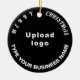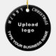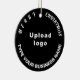 Feliz Natal! O ornamento cerâmico com textos de saudação de Feliz Natal, nome e logotipo da sua empresa ou empresa. Designs são textos brancos sobre fundo preto e em forma circular. Ornamento para decorar a árvore de Natal em sua loja, compro ou escritório. Ornamento para receber visualmente seus clientes nesta temporada de feriados e anunciar sua empresa ou promover seu nome de marca. Personalize-o e use-o para criar reconhecimento de nome de marca. Verifique a aparência após carregar o logotipo e digitar o nome da sua empresa. Se a aparência lhe agrada, você pode colocar seu pedido agora. Se você precisar redimensionar e mover o logotipo e os textos para o ajustado neste ornamento ou em outros estilos que você escolher, mude na ferramenta design. Você também pode fazer outras alterações de acordo com sua preferência na ferramenta design, como alterar a cor do ornamento, a cor da fonte e o estilo da fonte. Feliz Natal! Desejo mais vendas para você neste feriado.