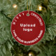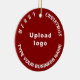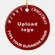 Feliz Natal! O ornamento cerâmico com textos de saudação de Feliz Natal, nome e logotipo da sua empresa ou empresa. Designs são textos brancos sobre fundo vermelho e em forma circular. Ornamento para decorar a árvore de Natal em sua loja, compro ou escritório. Ornamento para receber visualmente seus clientes nesta temporada de feriados e anunciar sua empresa ou promover seu nome de marca. Personalize-o e use-o para criar reconhecimento de nome de marca. Verifique a aparência após carregar o logotipo e digitar o nome da sua empresa. Se a aparência lhe agrada, você pode colocar seu pedido agora. Se você precisar redimensionar e mover o logotipo e os textos para o ajustado neste ornamento ou em outros estilos que você escolher, mude na ferramenta design. Você também pode fazer outras alterações de acordo com sua preferência na ferramenta design, como alterar a cor do ornamento, a cor da fonte e o estilo da fonte. Feliz Natal! Desejo mais vendas para você neste feriado.