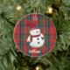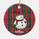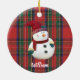 Ilumine acima de sua árvore de Natal e dê um toque do calor e o entusiasmo dos feriados a sua decoração do Natal com estes enfeites de natal cerâmicos do círculo encantador. Caracterizando um grupo bonito do impressão do boneco de neve do Natal contra um fundo preto vermelho do búfalo da xadrez da verificação, este ornamento encantador é uma maneira perfeita de comemorar a época natalícia com sua família e faz um grande presente para todos seus amados. Personalize-o com seu próprio fraseio.