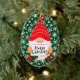 Gnomo bonitinho com chapéu de Papai Noel e sinal de Natal Feliz, edite o nome no verso