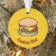 Ilustração de desenho animado cheeseburger. Imagem do contorno da comida de lixo ícones de fundo amarelo. Texto personalizado de ambos os lados.