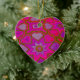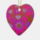 Este ornamento cardíaco de abanão rosado, reminiscente dos têxteis exóticos do Extremo Oriente, apresenta um complexo padrão de corações e estrelas. Parte da coleção 'Cheio do Amor' de ornamentos, comprar um ou toda a coleção para encher sua casa de amor o ano todo!